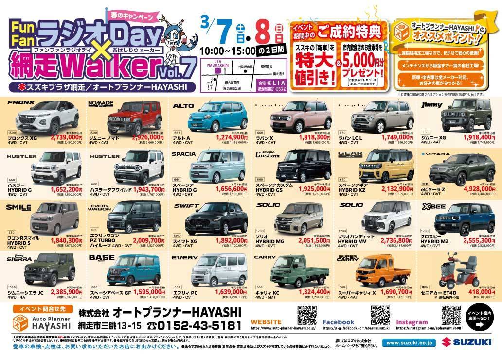 車検・点検, 整備, 鈑金, 車両販売, 保険, 代車貸出。 車に関することは、北海道網走市のオートプランナーHAYASHIまで